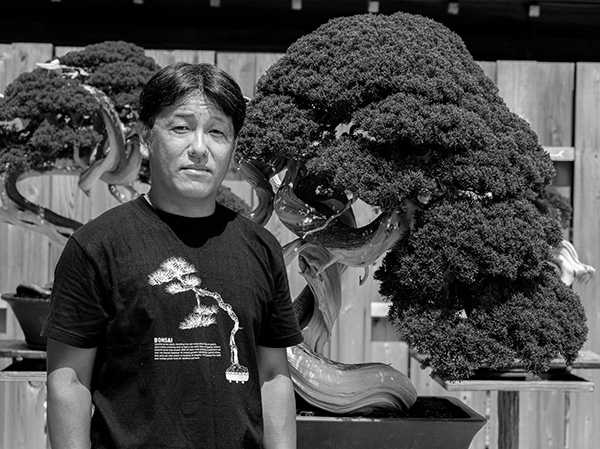 盆栽業者が集まる大宮で1945年に創業した福島園。3代目となる福島孝之は、盆栽の名門である愛知県の大樹園で5年間修業を積んだ後に家業を継ぎ、最近はNHKの番組への出演や講習会、雑誌などに登場。 盆栽に最適な環境を求めて印西市(旧印旛村)に本拠を移し、現在の敷地はなんと2,000坪!